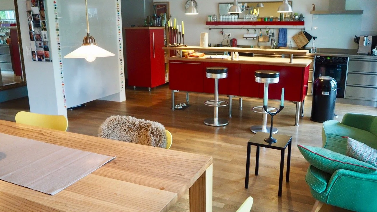 Die Wohnung ist zweistöckig, das Gästezimmer liegt im Obergeschoss und hat einen separaten Eingang über das Treppenhaus. Das Gebäude ist ein ehemaliges Kosthaus der Hero-Fabrikarbeiterinnen, das 2003 umgebaut wurde und nun von fünf Familien bewohnt wird. Besonders erwähnenswert ist die Gartenlandschaft, die das ganze Gebäude umgibt. Im Sommer findest du hier lauschige Plätzchen am Schatten zum Verweilen. Die Nachbarn sind freundlich und sehr zuvorkommend.